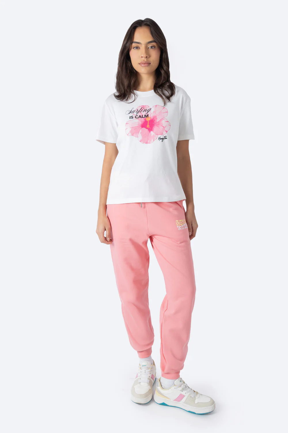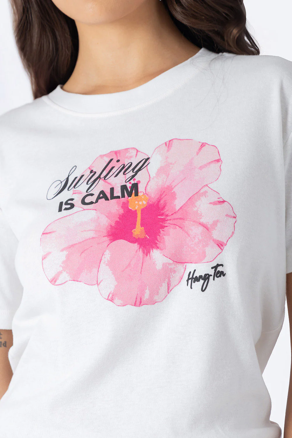 Playera de manga corta con cuello redondo que combina comodidad y estilo. Confeccionada en una mezcla equilibrada de 50% algodón y 50% poliéster, ofrece transpirabilidad y durabilidad. Destaca por su vibrante estampado de flor en rosa con el mensaje «SURFING IS CALM», perfecto para quienes buscan expresar su pasión por el surf con un toque de serenidad. Ideal para el uso diario, playa o actividades casuales.