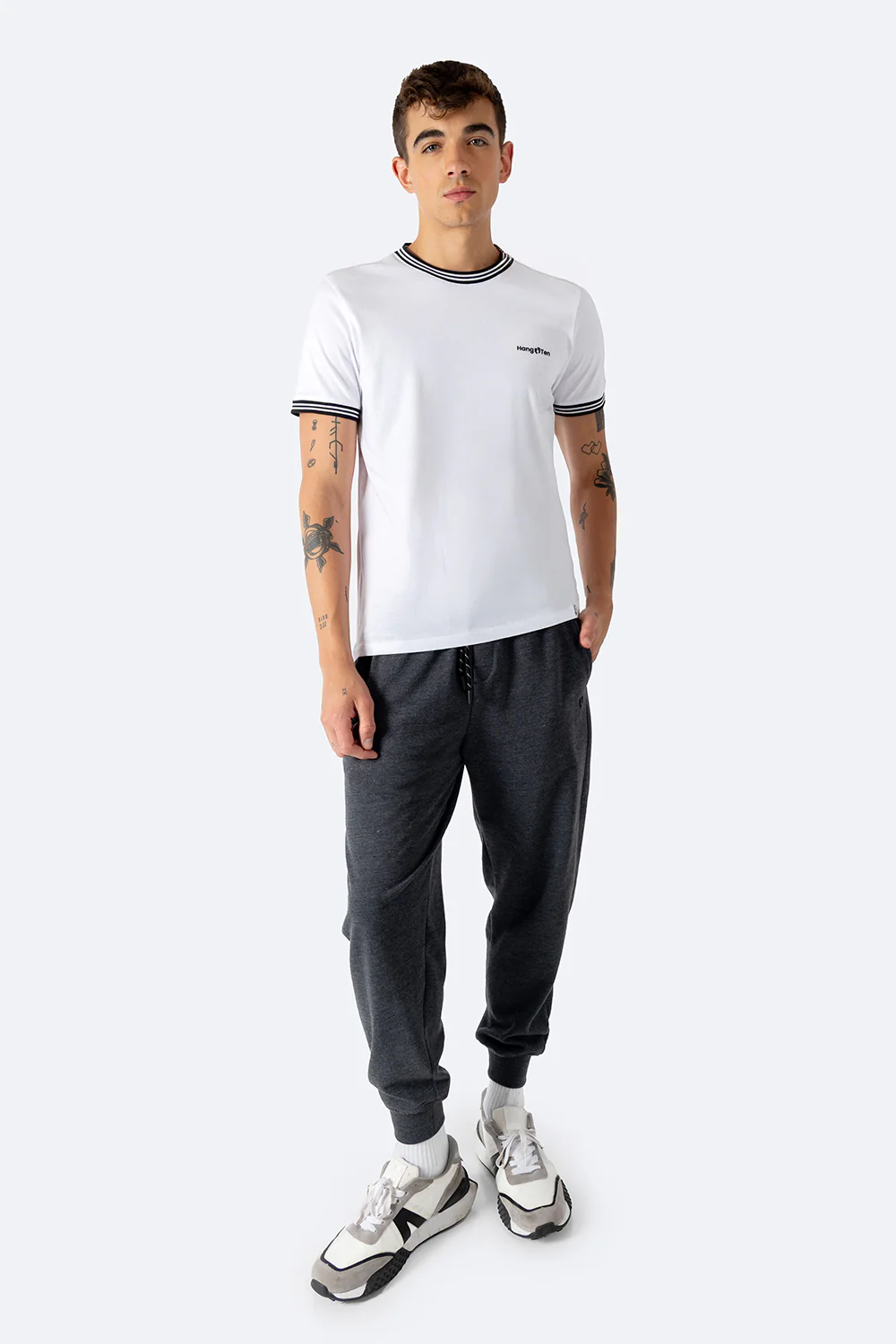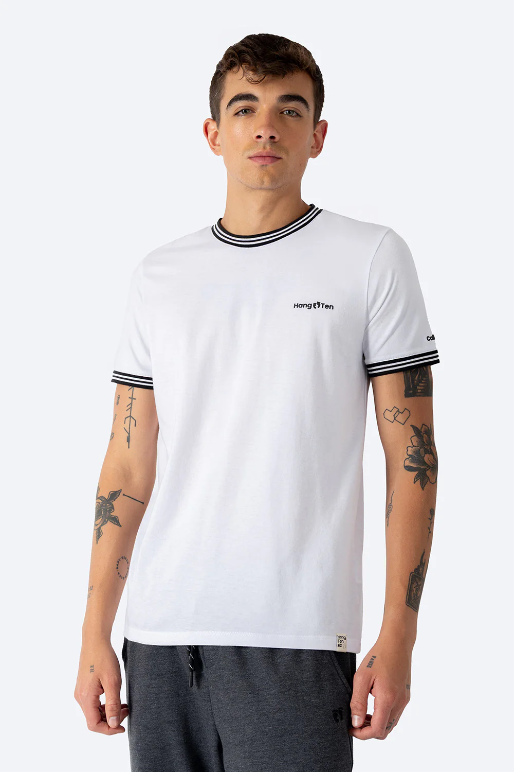 Esta playera de color blanco combina elegancia y comodidad con su cuello redondo y manga corta. Destaca por el bies a contraste en negro y blanco que añade un detalle sutil pero refinado. El mini estampado «California» en la manga aporta un toque distintivo, ideal para quienes buscan un estilo casual con personalidad y un acabado cuidado. Perfecta para uso diario, ofrece un ajuste cómodo y un diseño versátil que se adapta fácilmente a diferentes looks.
