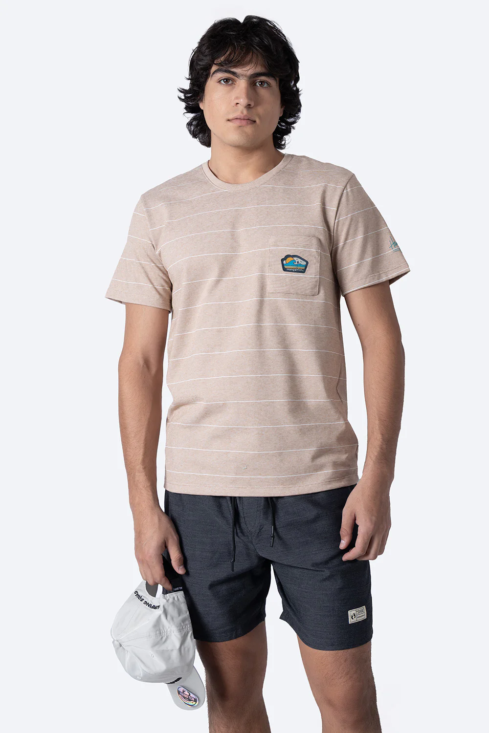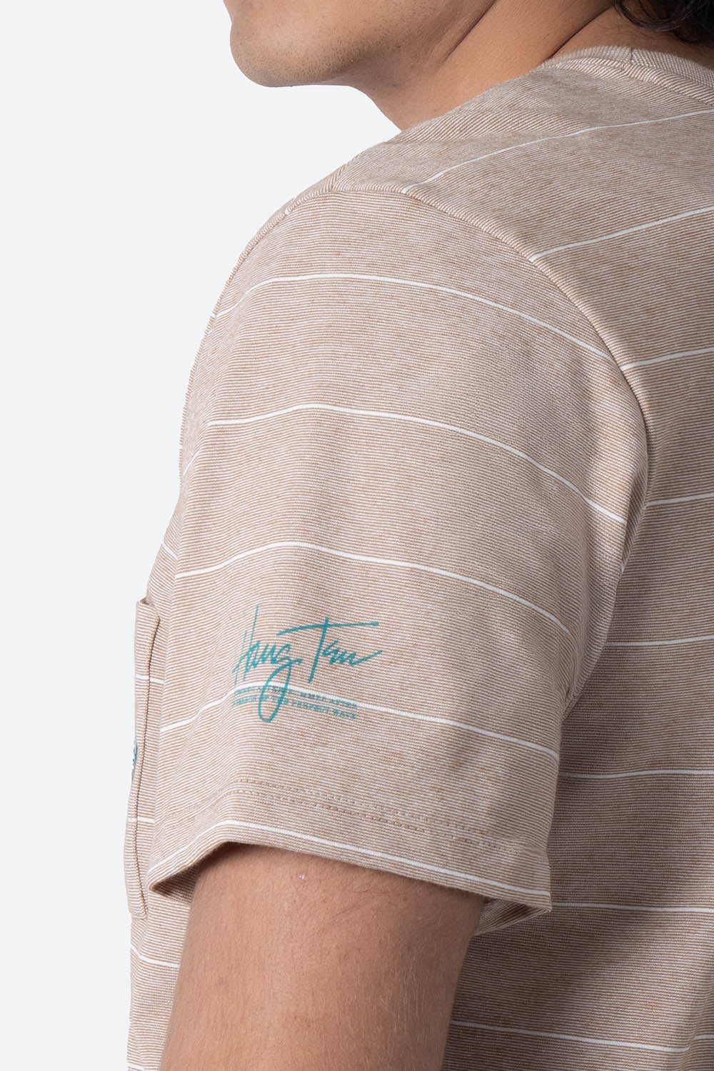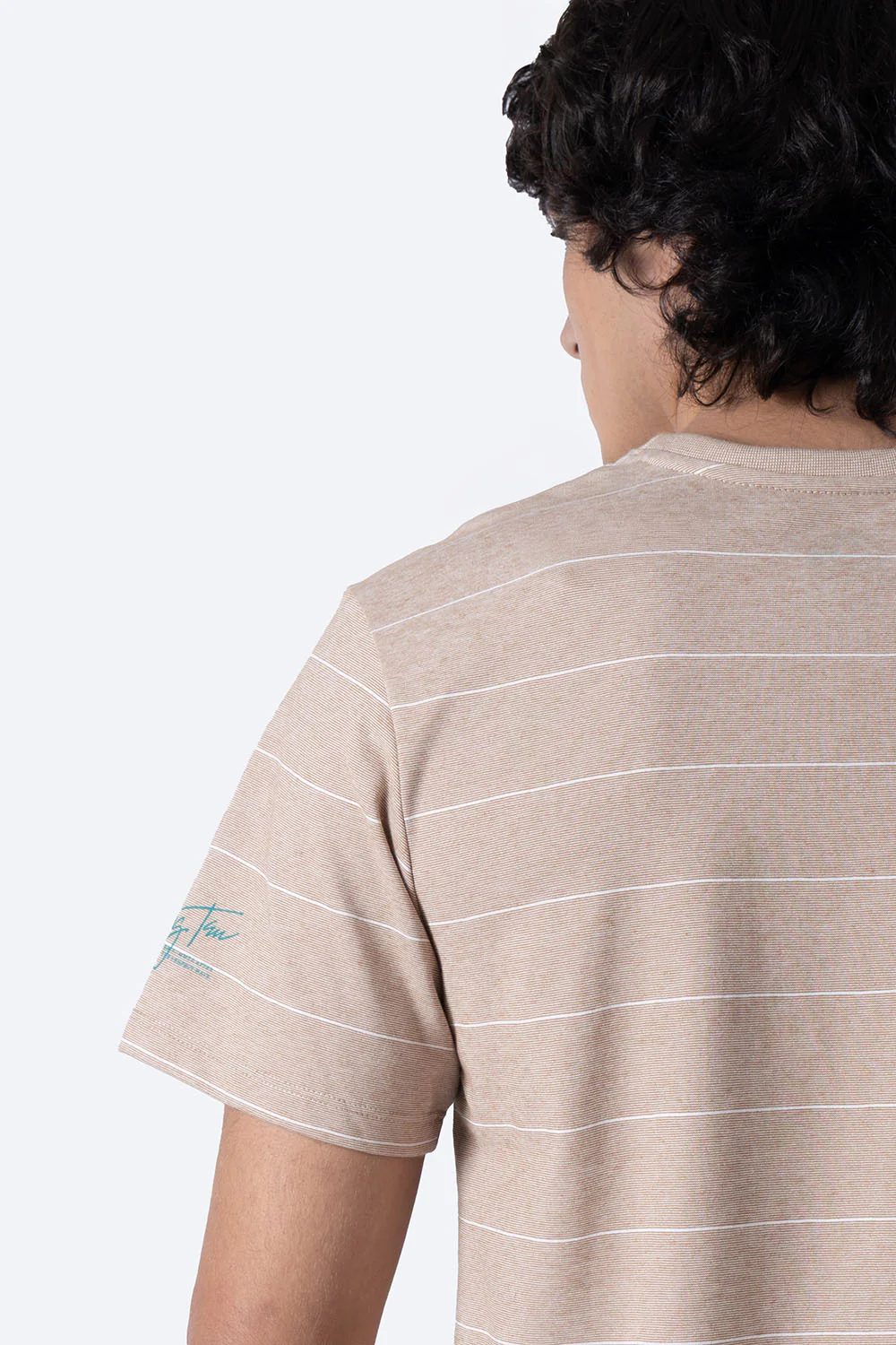 La playera rayada café claro cuello redondo está diseñada para ser cómoda y duradera. Con su patrón de rayas blancas y su mezcla de algodón y poliéster, esta playera es ideal para cualquier actividad durante el día. Úsala para salir a correr, para un día en la playa o para una tarde de compras. ¡Siempre lucirás elegante y a la moda!