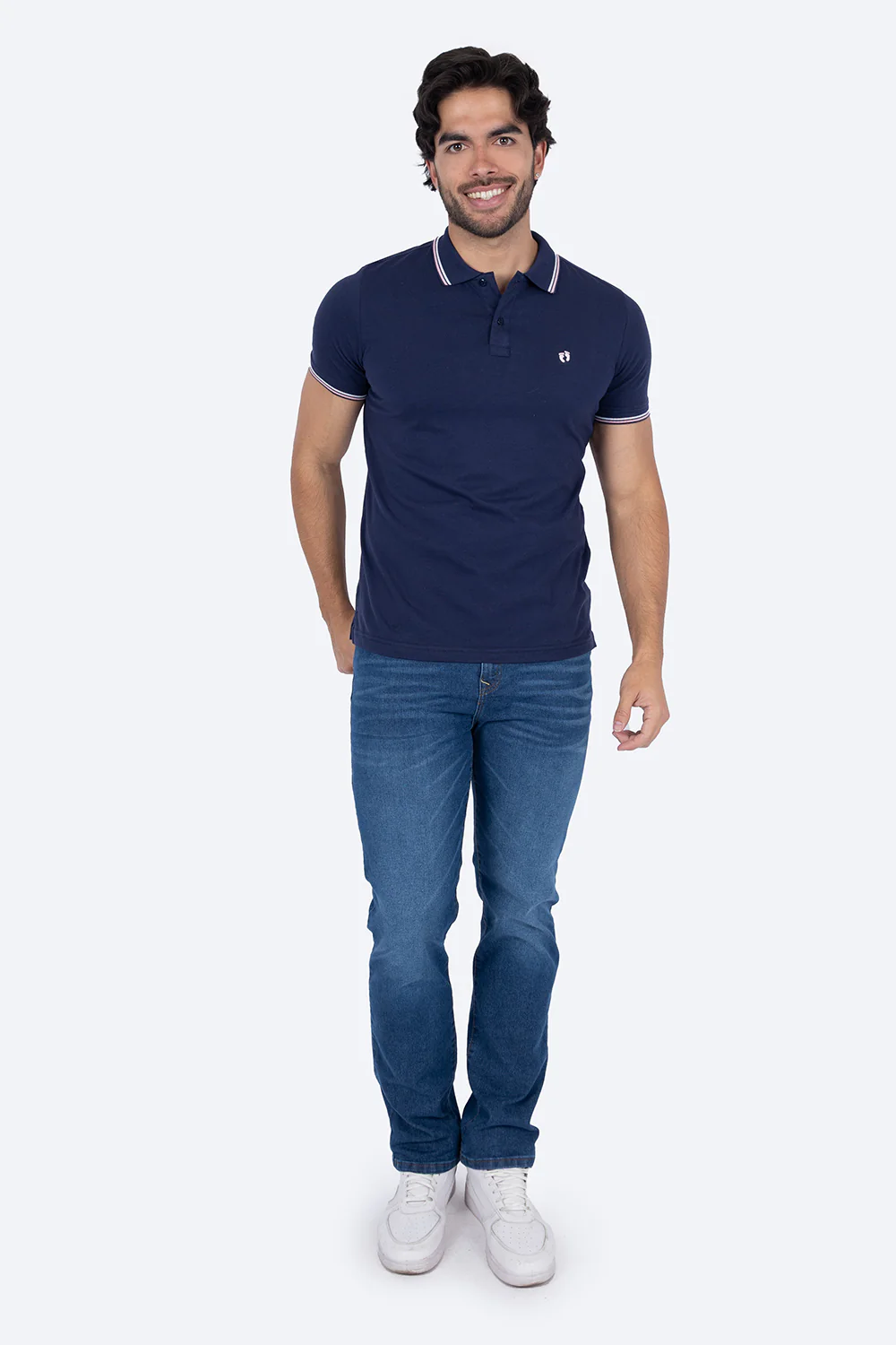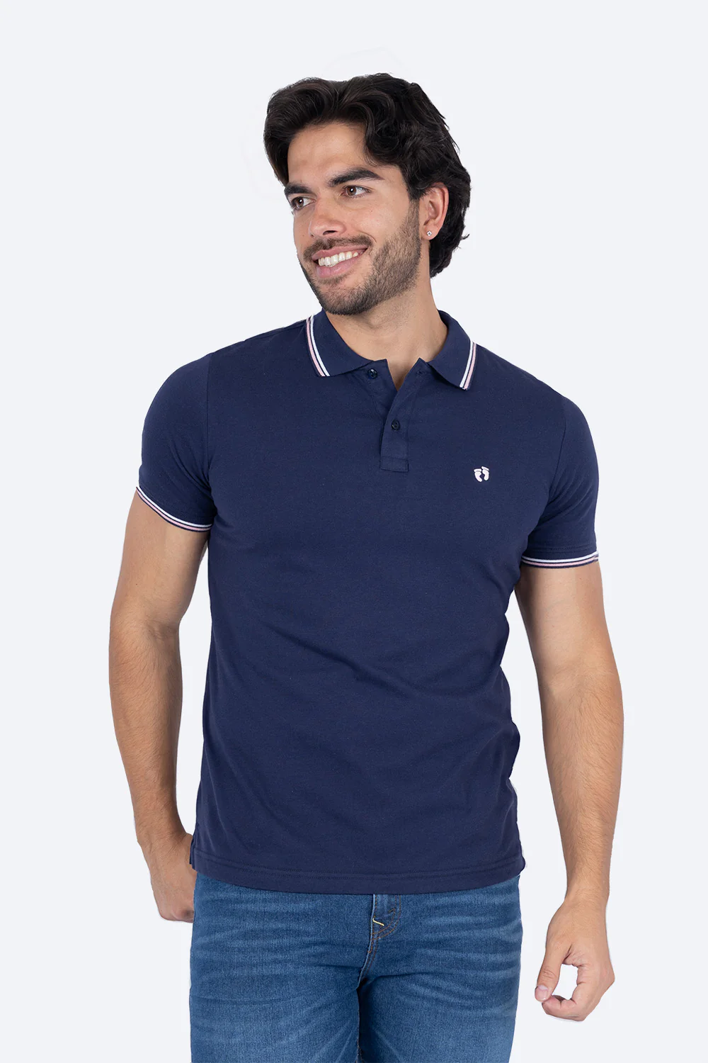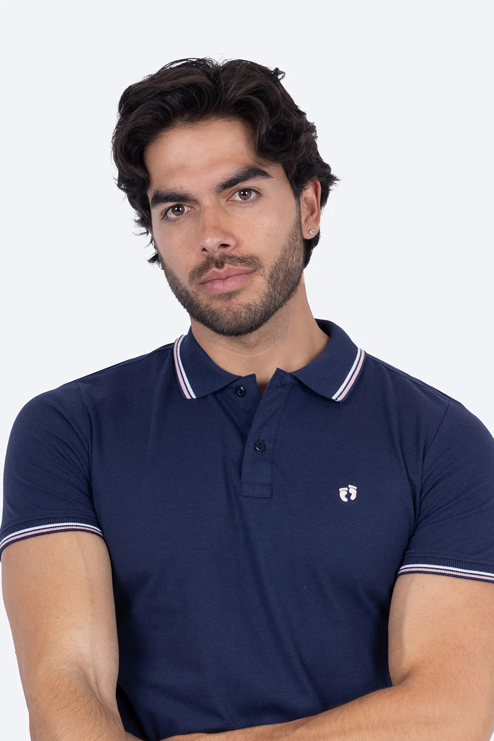 Este polo de chifón azul marino destaca por sus filos en contraste en tonos rosa y blanco, que aportan un toque moderno y sofisticado. Su logo bordado añade un detalle de calidad, mientras que la manga corta garantiza comodidad y frescura. Ideal para quienes buscan un estilo elegante y contemporáneo sin sacrificar confort.