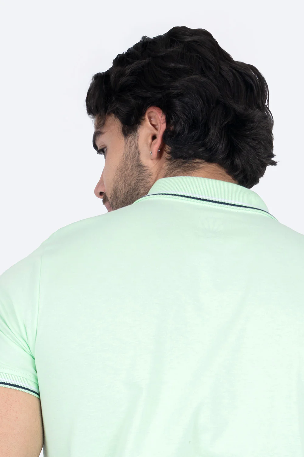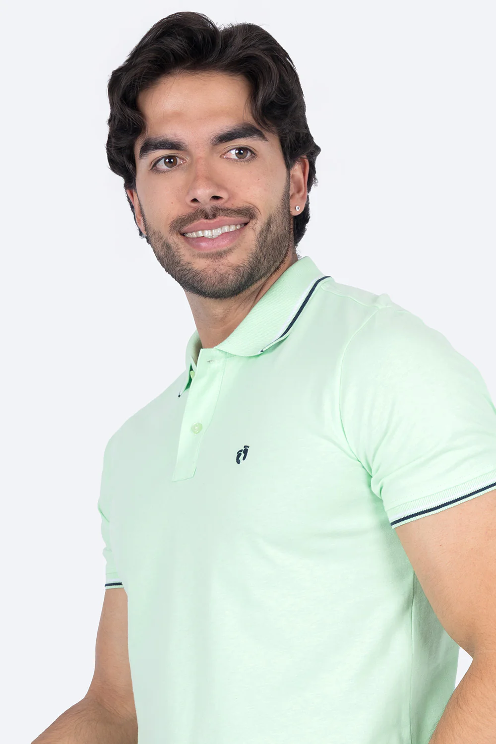 Este polo de chifón verde destaca por sus filos en contraste en tonos blanco con negro, que aportan un toque moderno y sofisticado. Su logo bordado añade un detalle de calidad, mientras que la manga corta garantiza comodidad y frescura. Ideal para quienes buscan un estilo elegante y contemporáneo sin sacrificar confort.