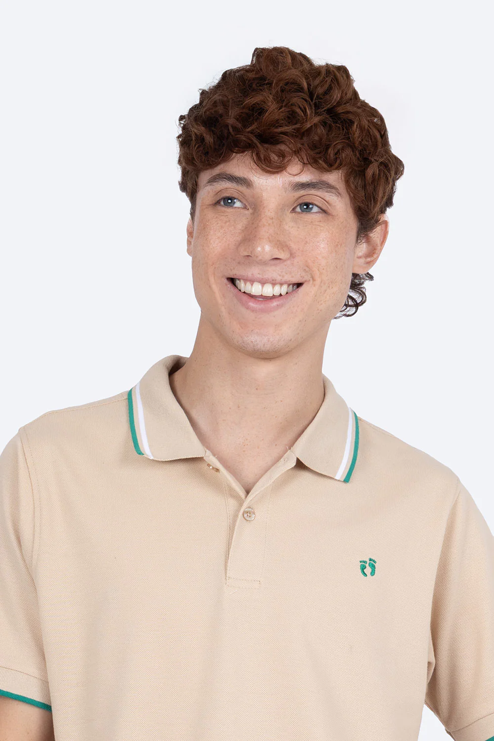 Este polo piqué beige destaca por sus filos en contraste en tonos blanco con verde, que aportan un toque moderno y sofisticado. Su logo bordado añade un detalle de calidad, mientras que la manga corta garantiza comodidad y frescura. Ideal para quienes buscan un estilo elegante y contemporáneo sin sacrificar confort.
