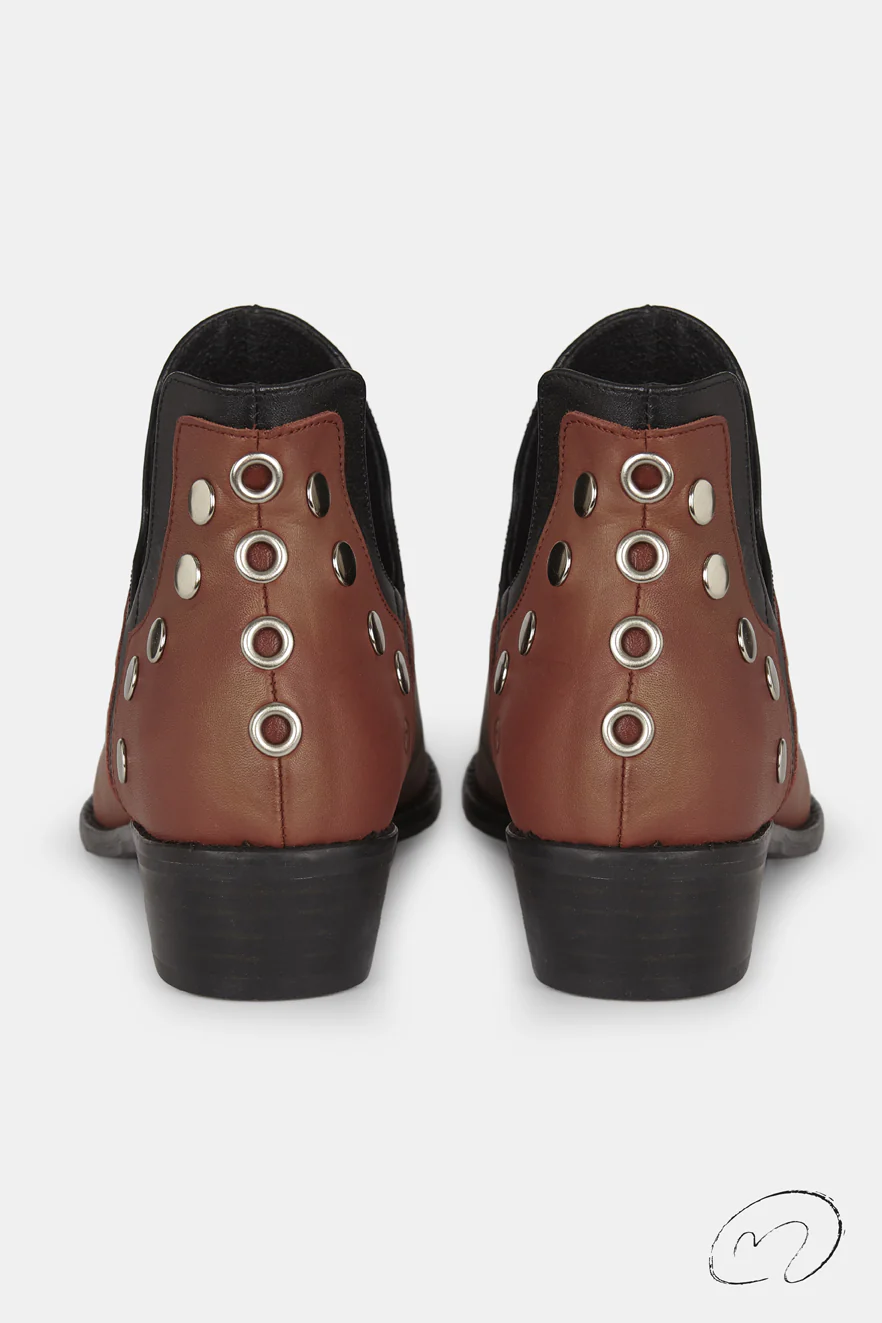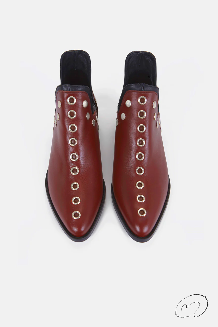 Nuestras icónicas Punky Boots en piel vacuno avellana son el equilibrio perfecto entre atemporalidad y carácter. Silueta abierta en el tobillo rematada con ribete a tono, ofrece un acabado versátil. Detalles de tachas metálicas hipoalérgicas en tono plata que marcan la esencia Micuir a cada paso. Presenta un tacón de 4 cm de altura con plantilla de microgel para un mayor confort. Forro y plantilla de piel mestizo de cabra a tono y planta con certificado »handmade in Spain» con logo grabado a fuego. Incluye una bolsa de algodón. Diseñado y fabricado artesanalmente en España.