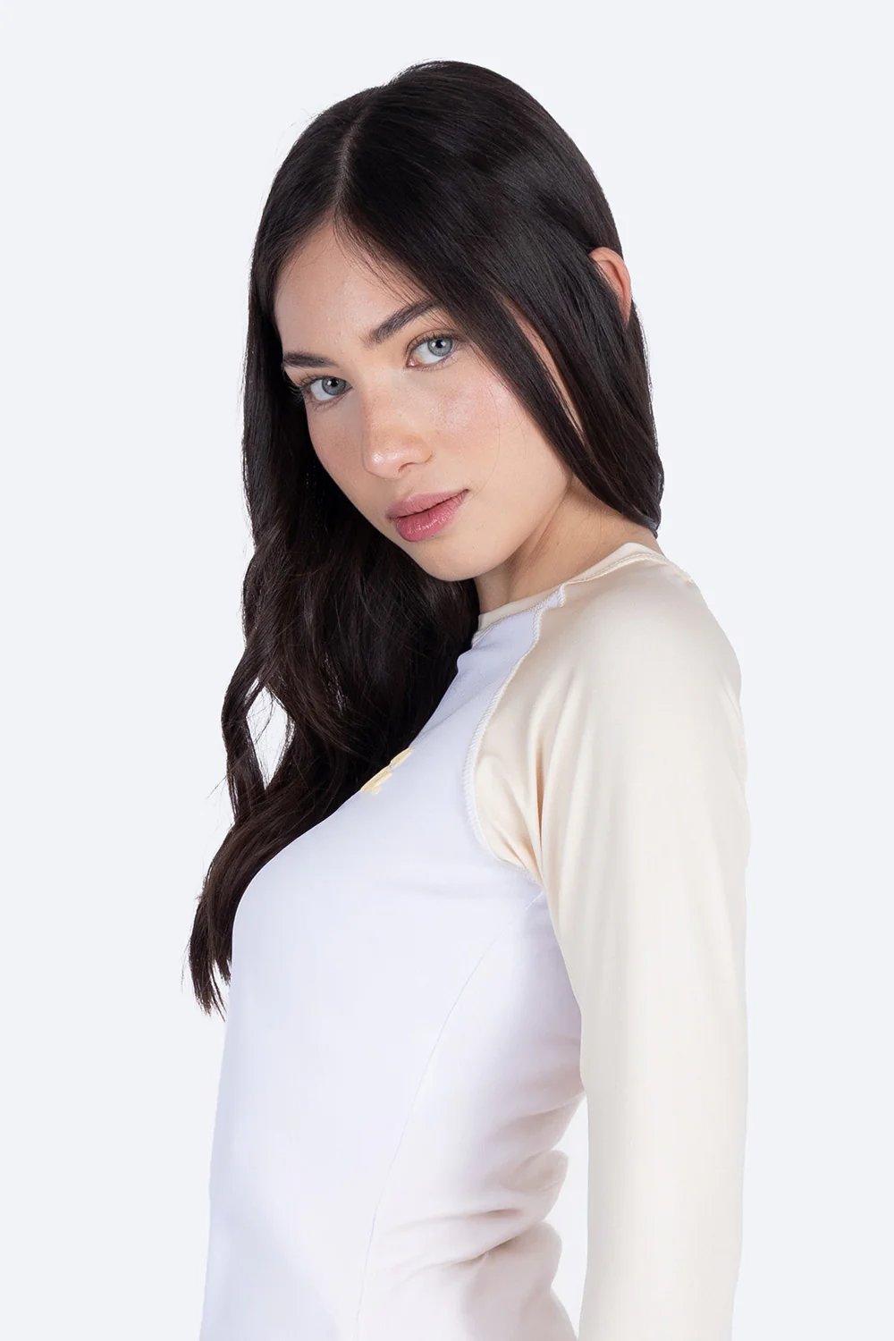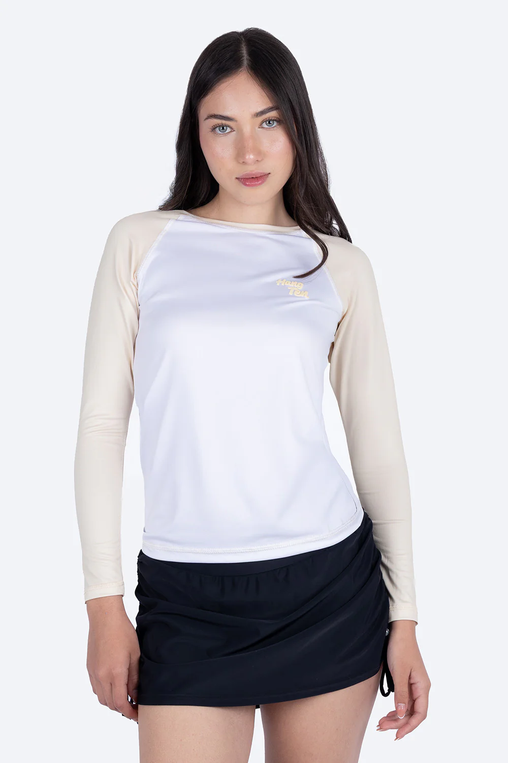 Disfruta de tus sesiones de surf con la comodidad y estilo de nuestra Rashguard combinada en blanco y amarillo. Se encuentra hecha de un 90% de poliéster y un 10% de elastano para una libertad de movimiento máxima. Además, su mini estampado de Hang Ten le añade un toque de diversión a tu equipo de surf. ¡Conquista las olas con confianza y comodidad!