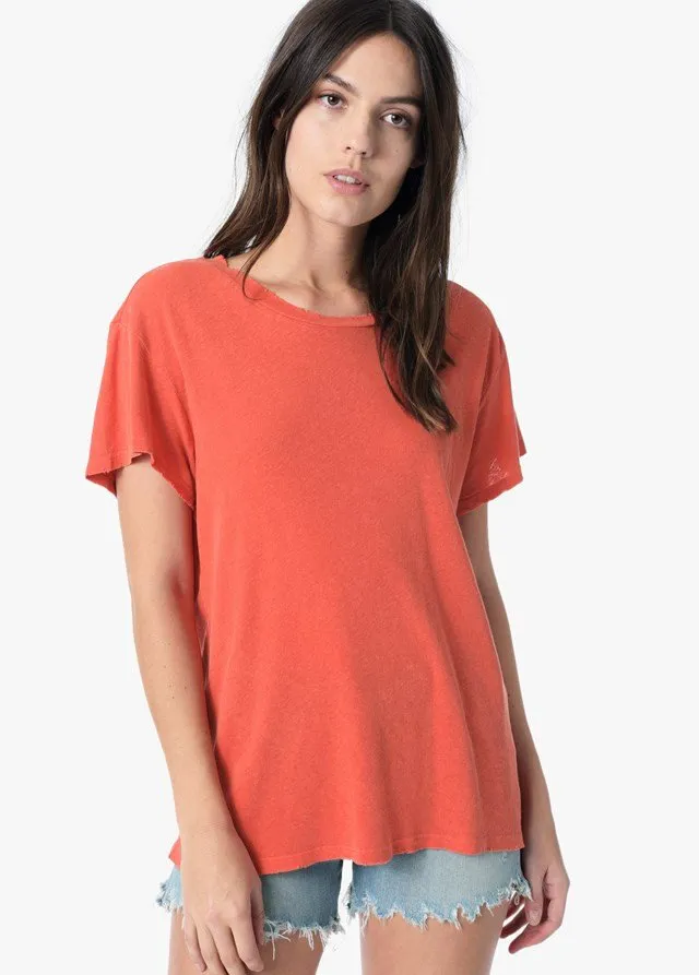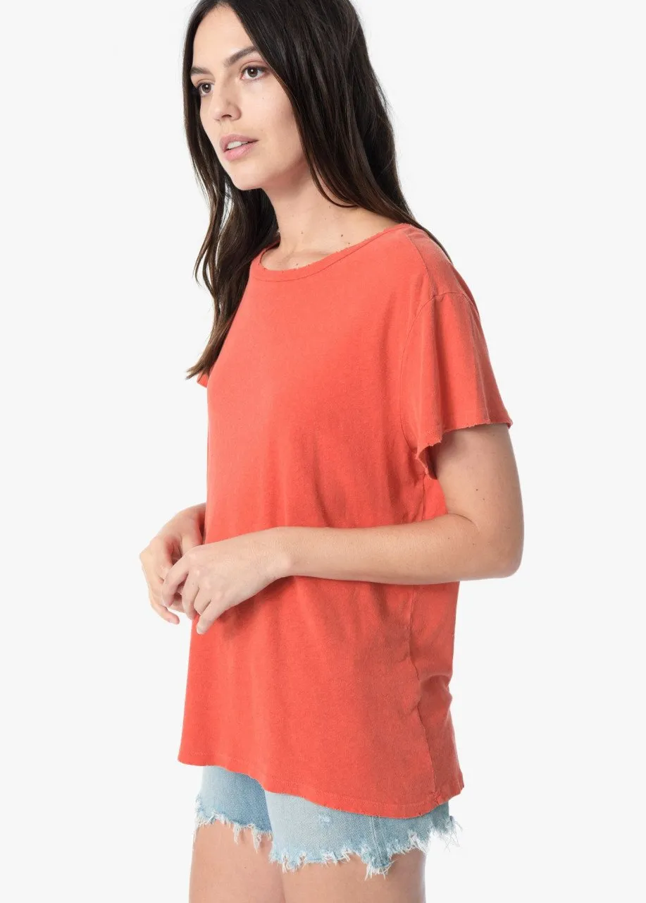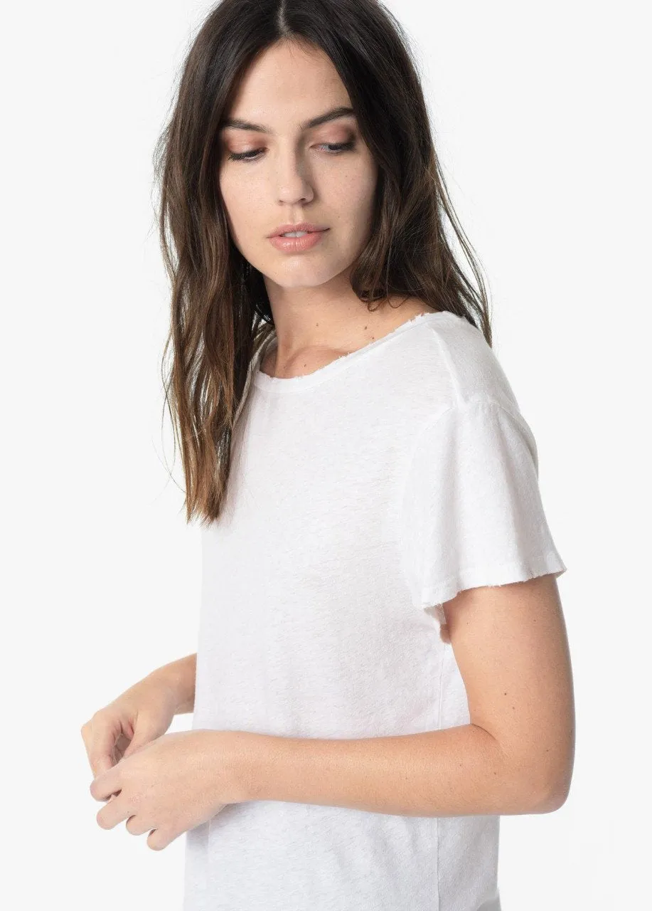 55% Lino 45% Algodón–Nuestra Rebel Tee es un componente fácil del uniforme de todos los días. El estilo de cuello redondo viene en una silueta de manga corta fácil de usar hecha de una mezcla de lino brisa que ha sido teñida con pigmentos y angustiada en los bordes para un ambiente vintage.–