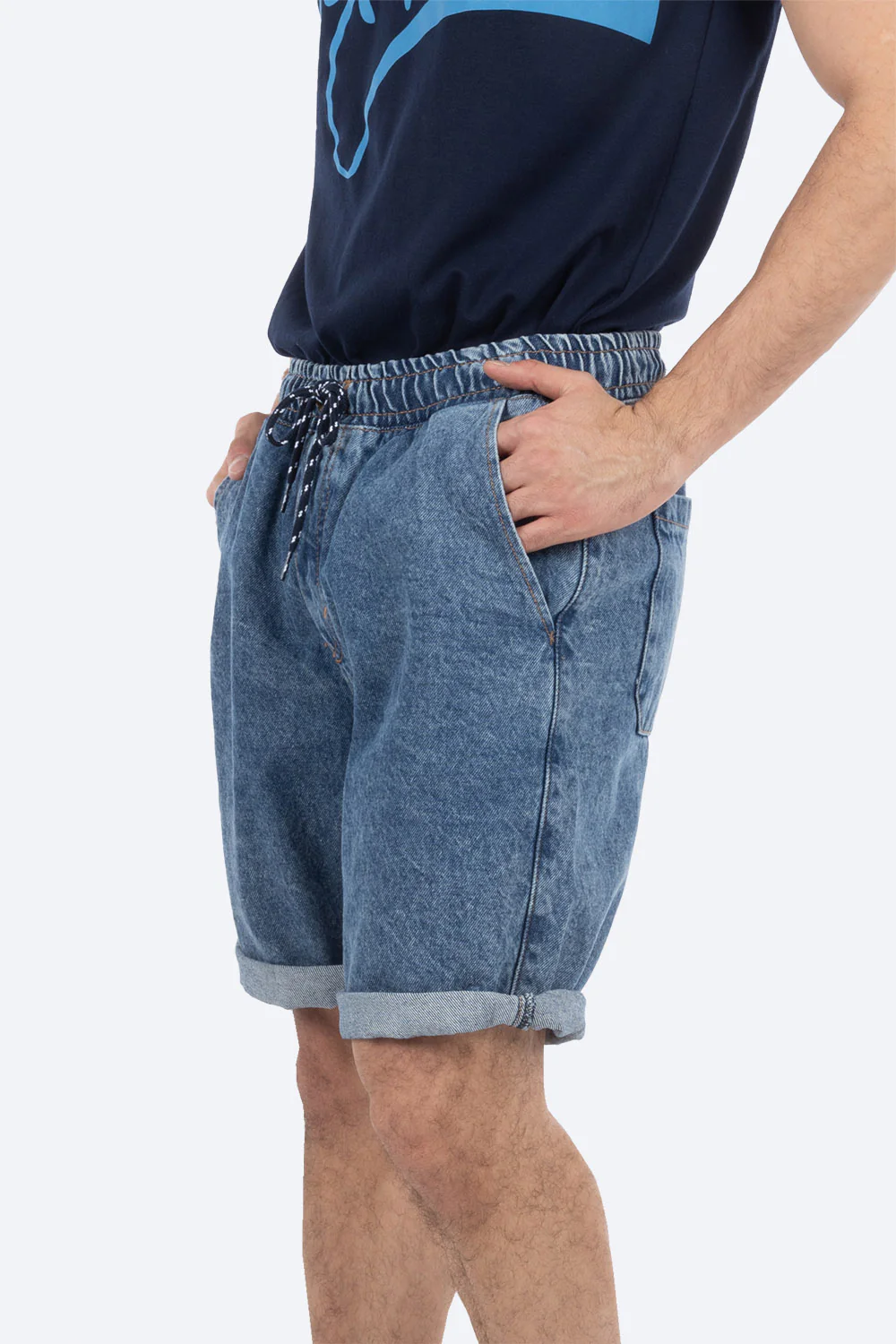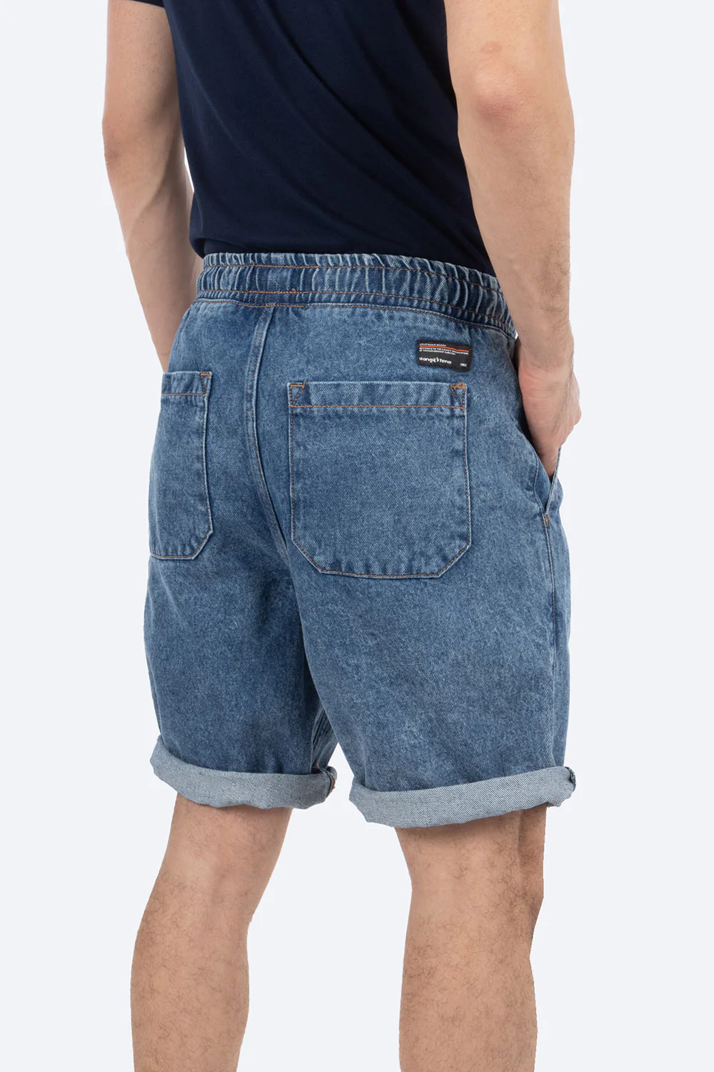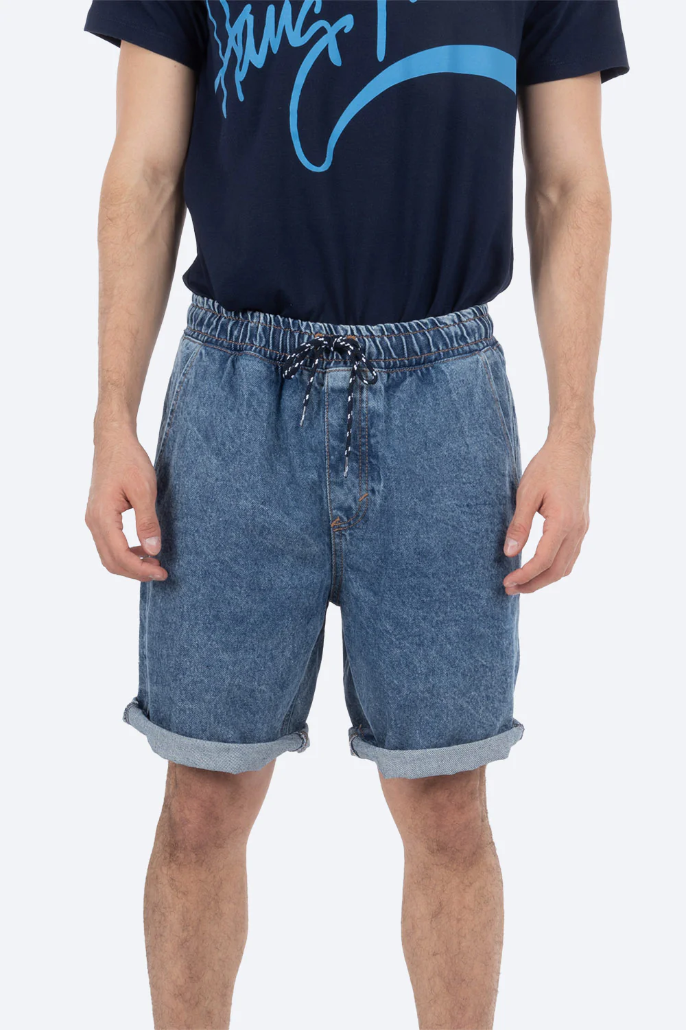 Short azul con resorte acid wash