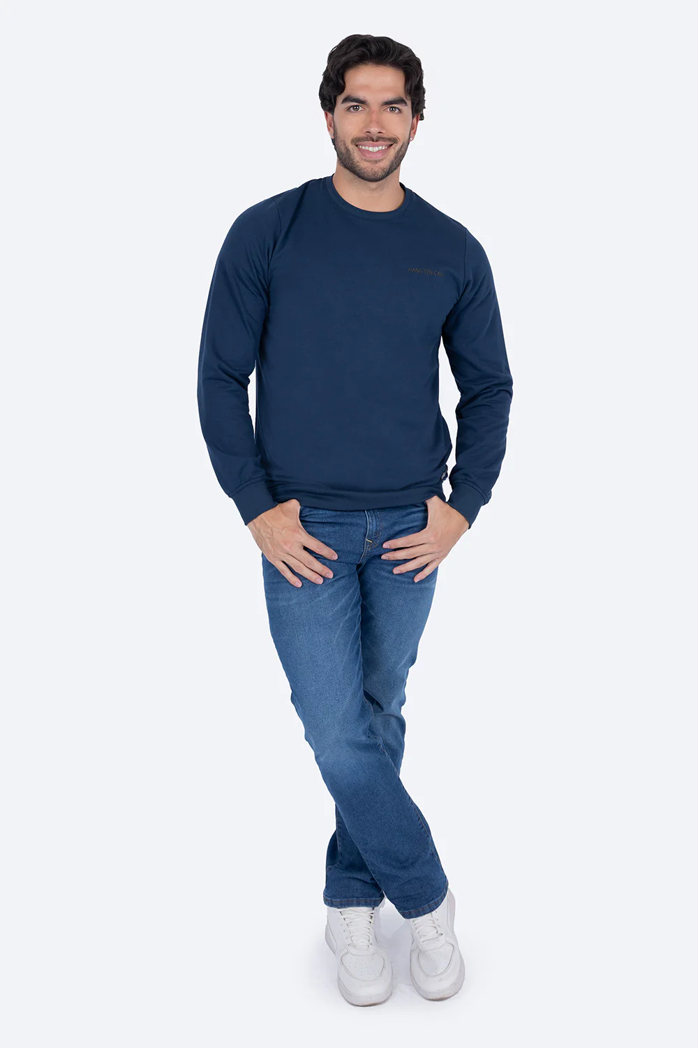 Esta sudadera cerrada en color azul marino combina un diseño clásico de cuello redondo con la calidad de una mezcla equilibrada de 50% algodón y 50% poliéster, que ofrece comodidad y durabilidad. Su acabado incluye un discreto estampado de Hang Ten, aportando un toque sutil de estilo y autenticidad. Ideal para quienes buscan una prenda versátil y resistente para el uso diario.