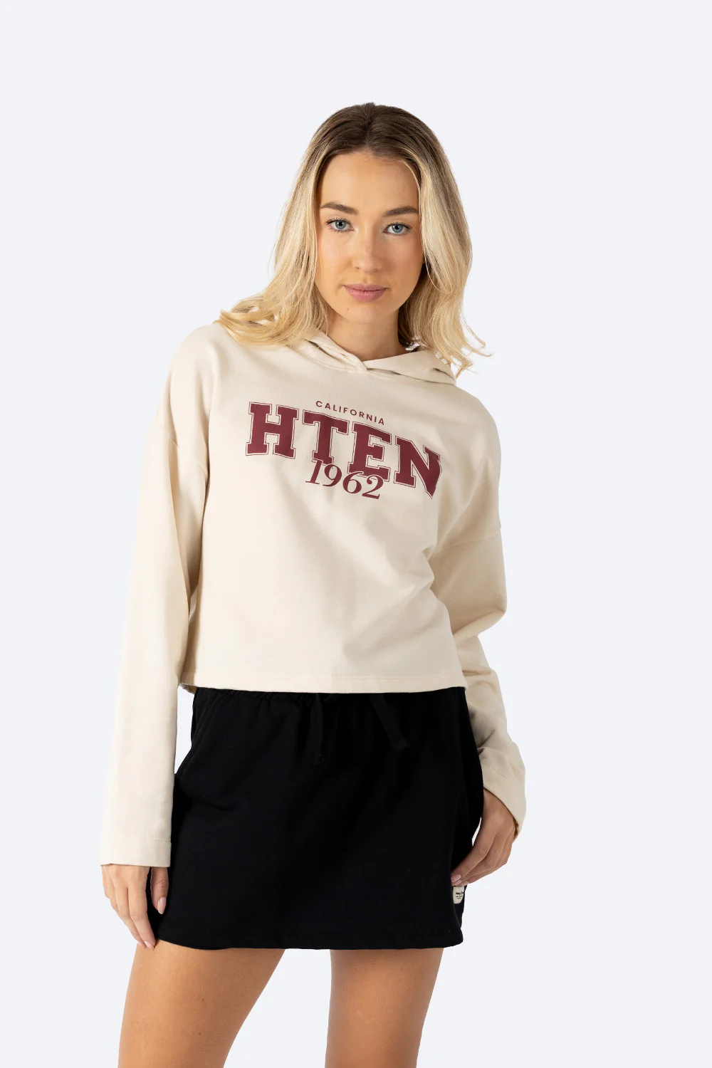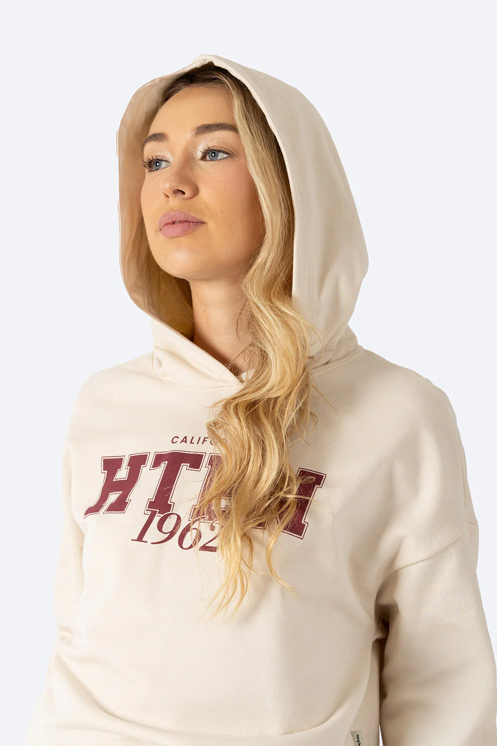 Esta sudadera cerrada para mujer, en un tono beige claro, combina estilo y comodidad. Cuenta con capucha para mayor protección, mientras que el estampado «California HTEN 1962» en color vino añade un toque distintivo y moderno. Su interior afelpado ofrece una suavidad excepcional que mantiene el calor, ideal para días frescos. Perfecta para un look casual sin sacrificar confort.