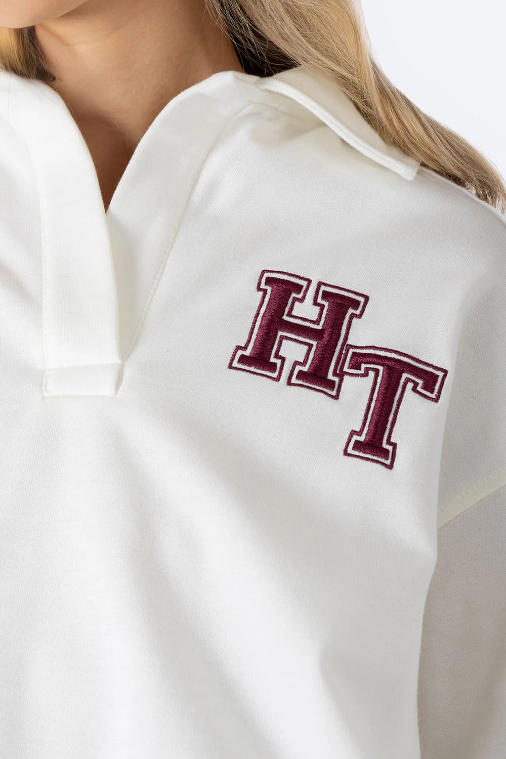 Esta sudadera tipo polo para mujer en color beige combina comodidad y estilo gracias a su confección en 50% algodón y 50% poliéster, que garantiza suavidad y durabilidad. Presenta un bordado detallado de HT en tono vino, aportando un toque elegante y distintivo. Ideal para quienes buscan una prenda versátil y contemporánea que se adapte a diferentes ocasiones casuales.