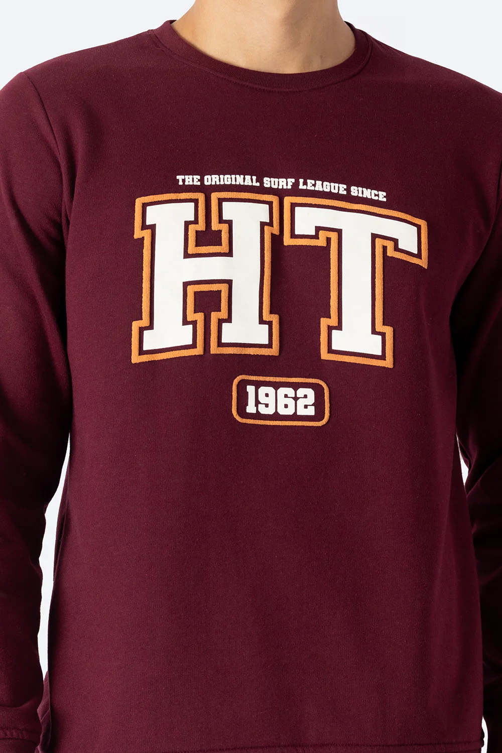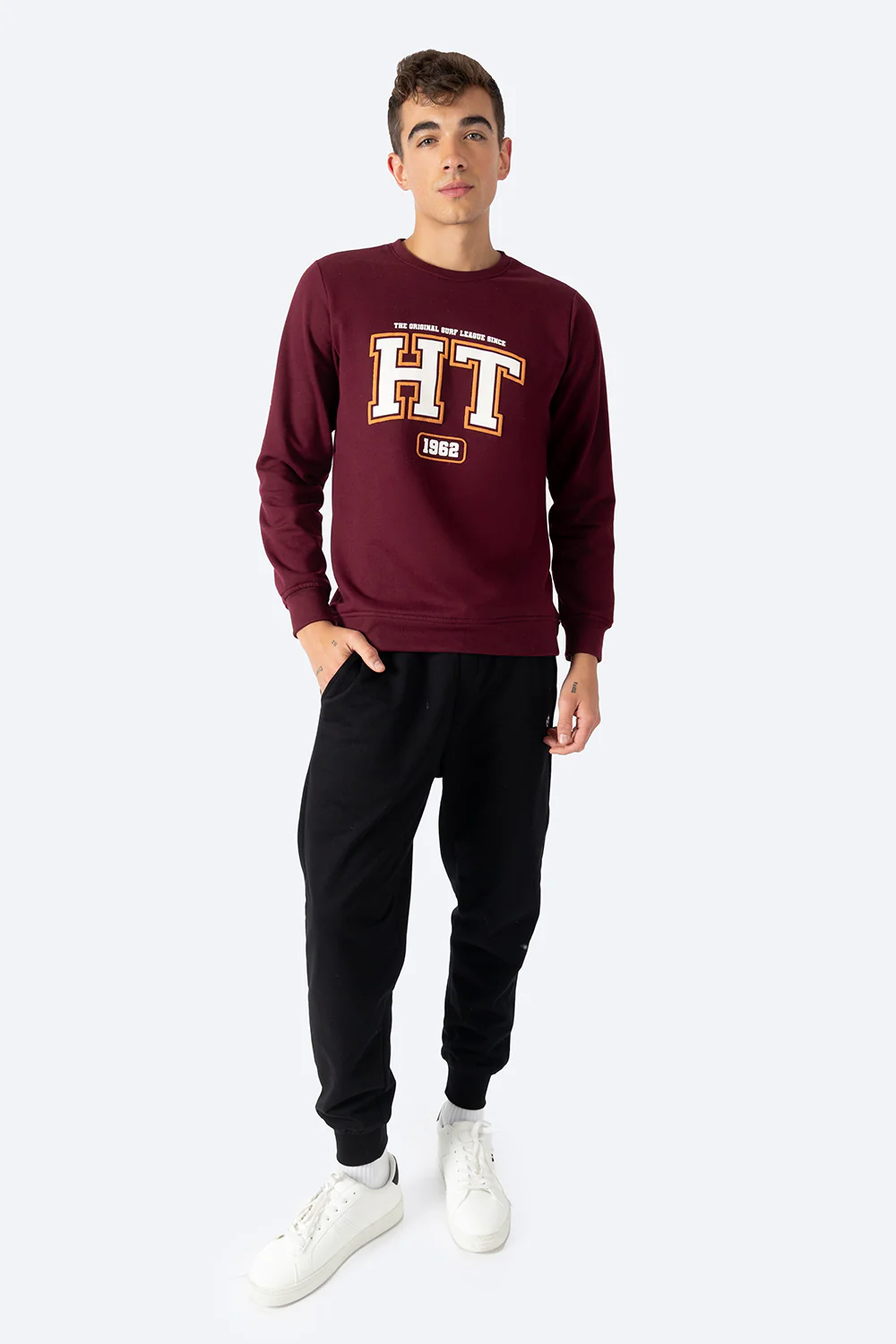 Esta sudadera de cuello redondo en color vino combina un tejido 50% algodón y 50% poliéster para ofrecer comodidad y durabilidad. Su interior afelpado brinda una sensación cálida y suave al contacto con la piel, ideal para mantenerte abrigado en climas frescos. El estampado HT1962 en tonos verde y azul añade un detalle distintivo y moderno, haciendo de esta prenda una opción versátil y funcional para cualquier ocasión.
