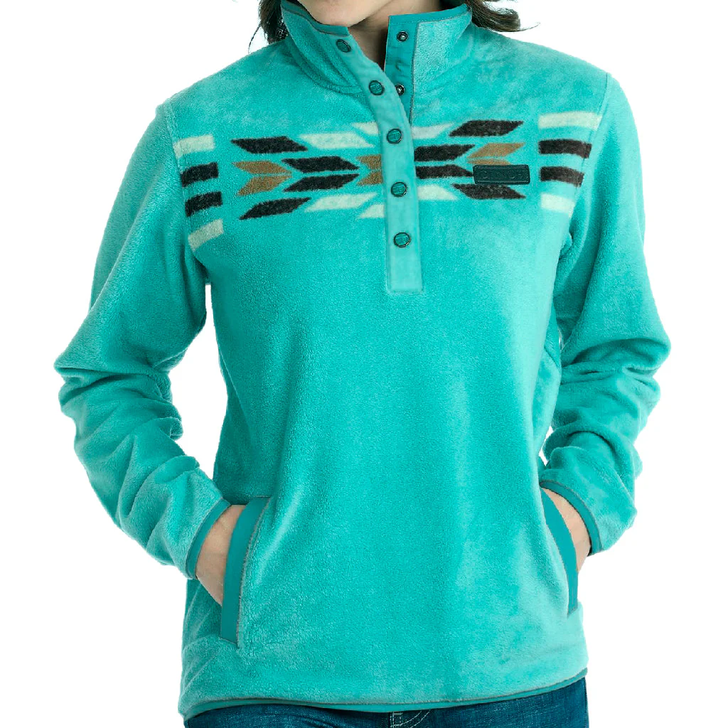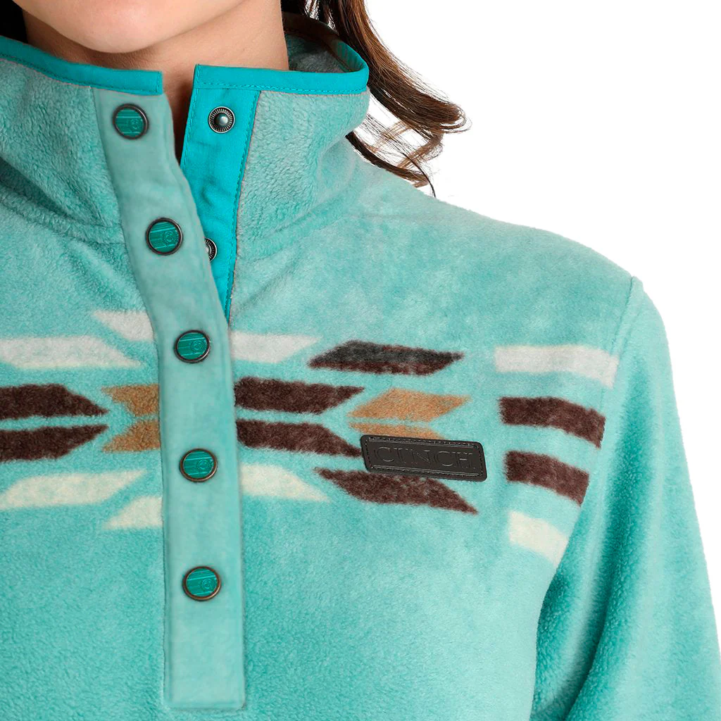 Haz espacio para este jersey de polar estampado turquesa, una opción elegante para mantenerte a la moda y abrigado. La cómoda confección en poliéster y elastano presenta una tapeta con botones a presión, bolsillos exteriores y un parche con el logotipo CINCH de piel sintética.