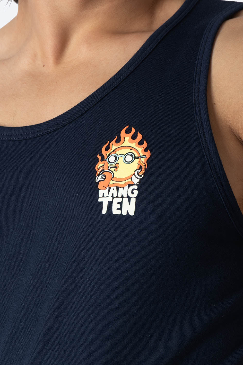 Este tank top azul marino, confeccionado en 100% algodón, ofrece comodidad y frescura durante todo el día. Su diseño incluye un estampado de sol en la espalda que aporta un toque distintivo y moderno, ideal para quienes buscan estilo sin sacrificar funcionalidad. Perfecto para climas cálidos o actividades casuales, combina durabilidad con un acabado suave al tacto.