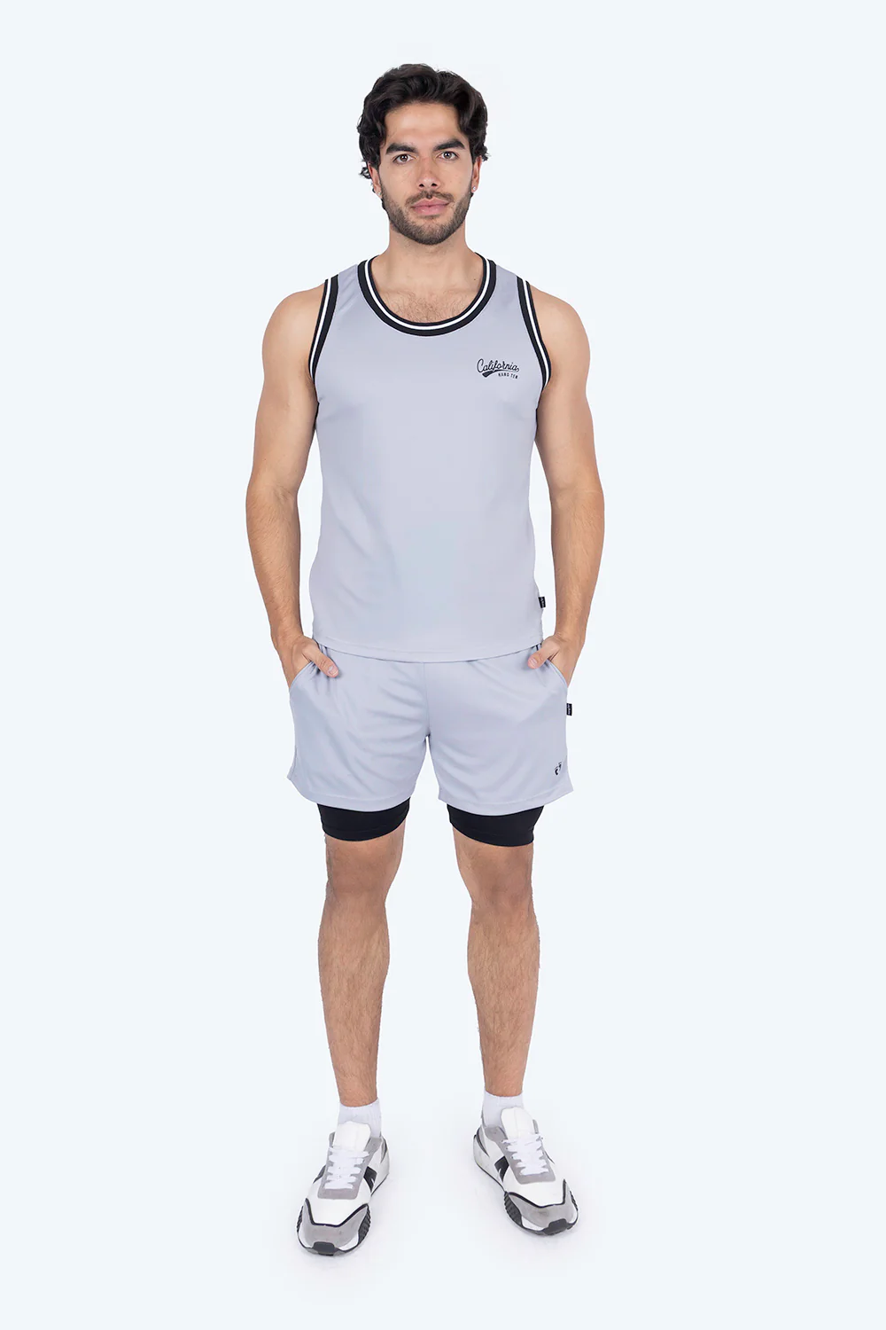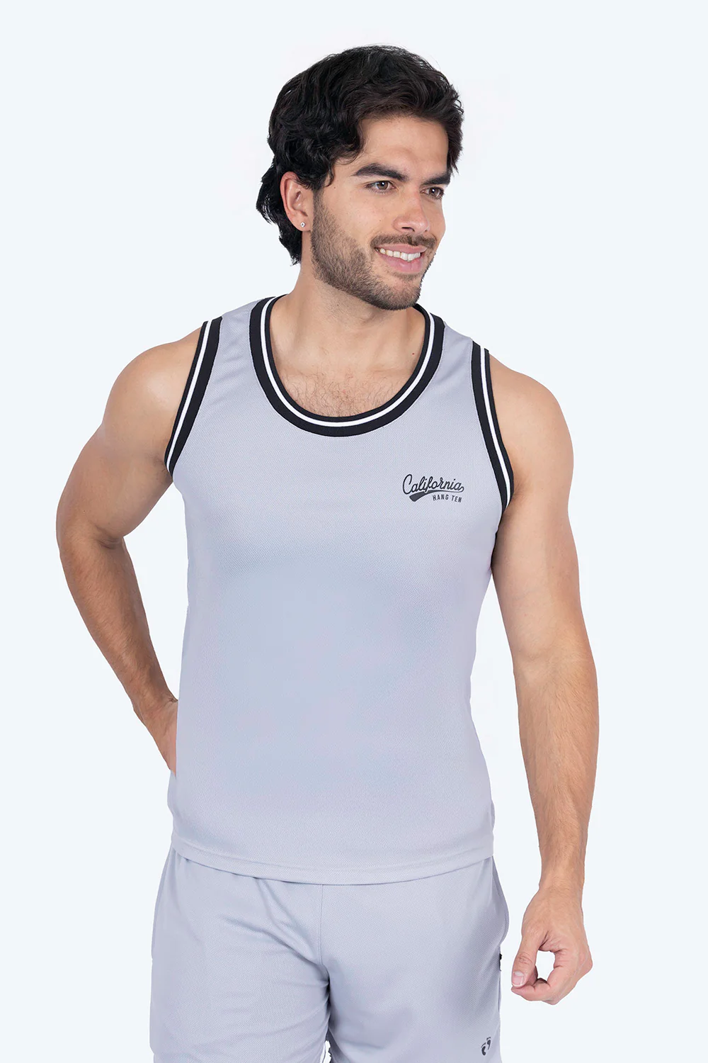 Esta camiseta sin mangas deportiva gris, confeccionada 100% en poliéster, ofrece una combinación ideal de ligereza y transpirabilidad para tus entrenamientos. Su diseño incluye unas piernas en contraste negro que aportan un toque moderno y estilizado, mientras que el tejido técnico asegura comodidad y libertad de movimiento durante la actividad física. Perfecta para quienes buscan rendimiento y estilo en una sola prenda.
