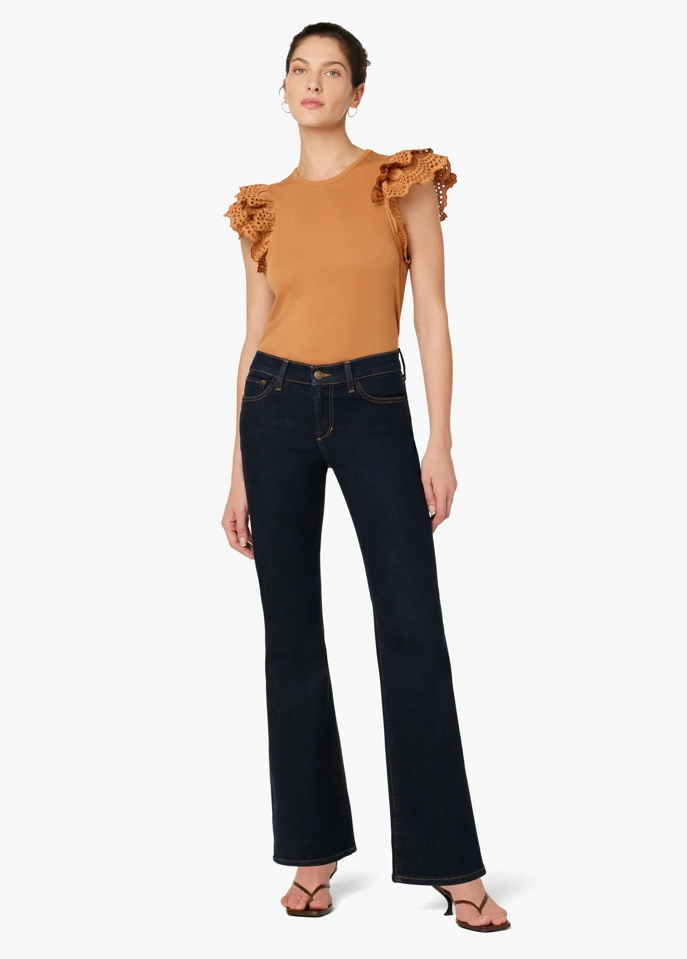 Fibras importadas. -Jeans para mujer The Vixen Low Rise Bootcut, un clásico, en tono rinse, que presenta trabillas para cinturón, remaches metálicos, 5 bolsillos, bragueta y cierre de botón. –