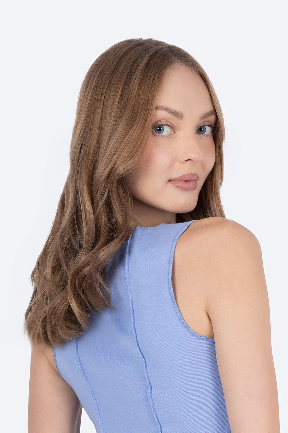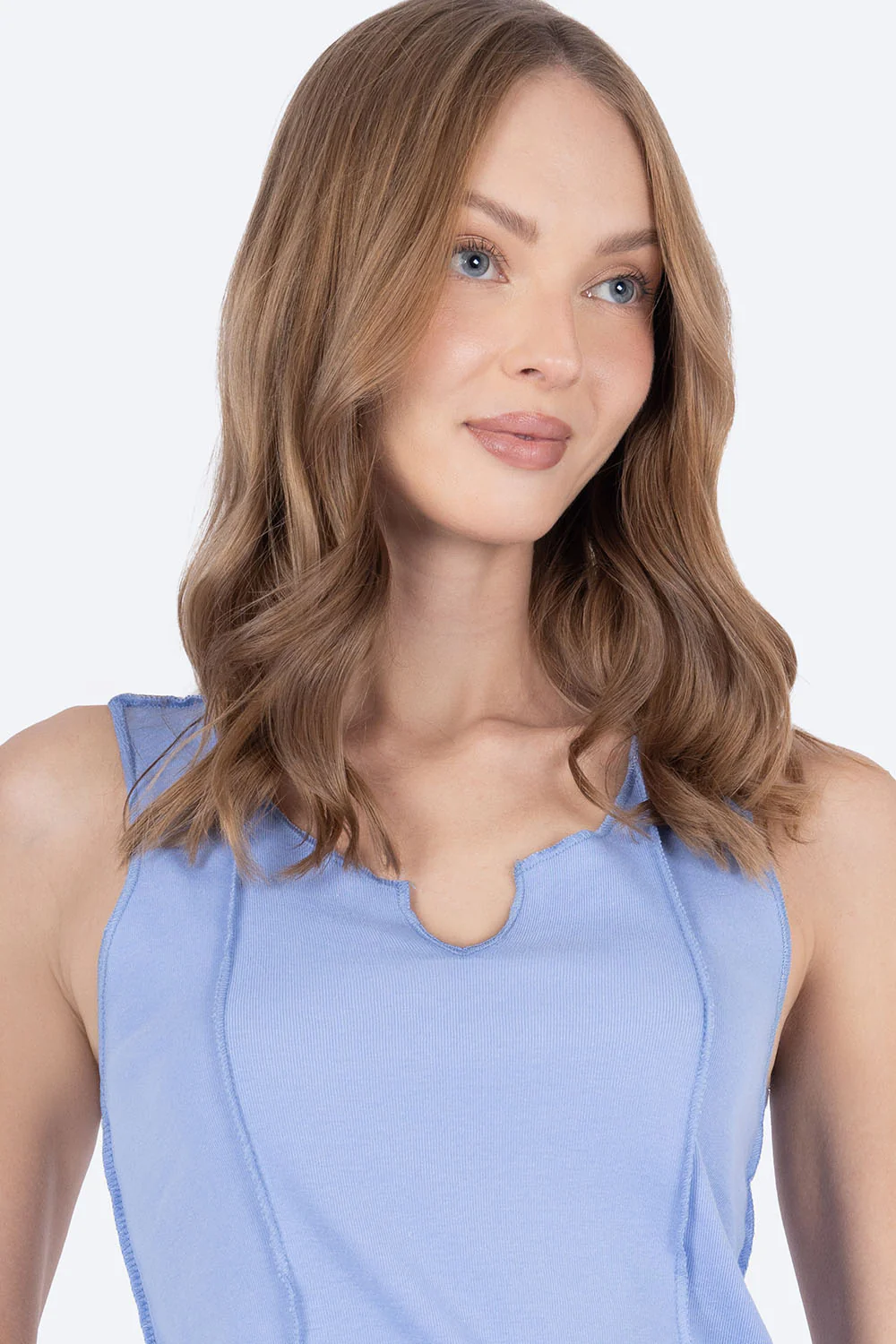 Esta top azul medio combina comodidad y estilo con su tejido 50% algodón y 50% poliéster, que ofrece suavidad y durabilidad. Su diseño incluye un bordado lineal vertical que aporta un detalle sofisticado, mientras que el cuello en forma de U garantiza un ajuste cómodo y fresco, ideal para cualquier ocasión casual o deportiva.