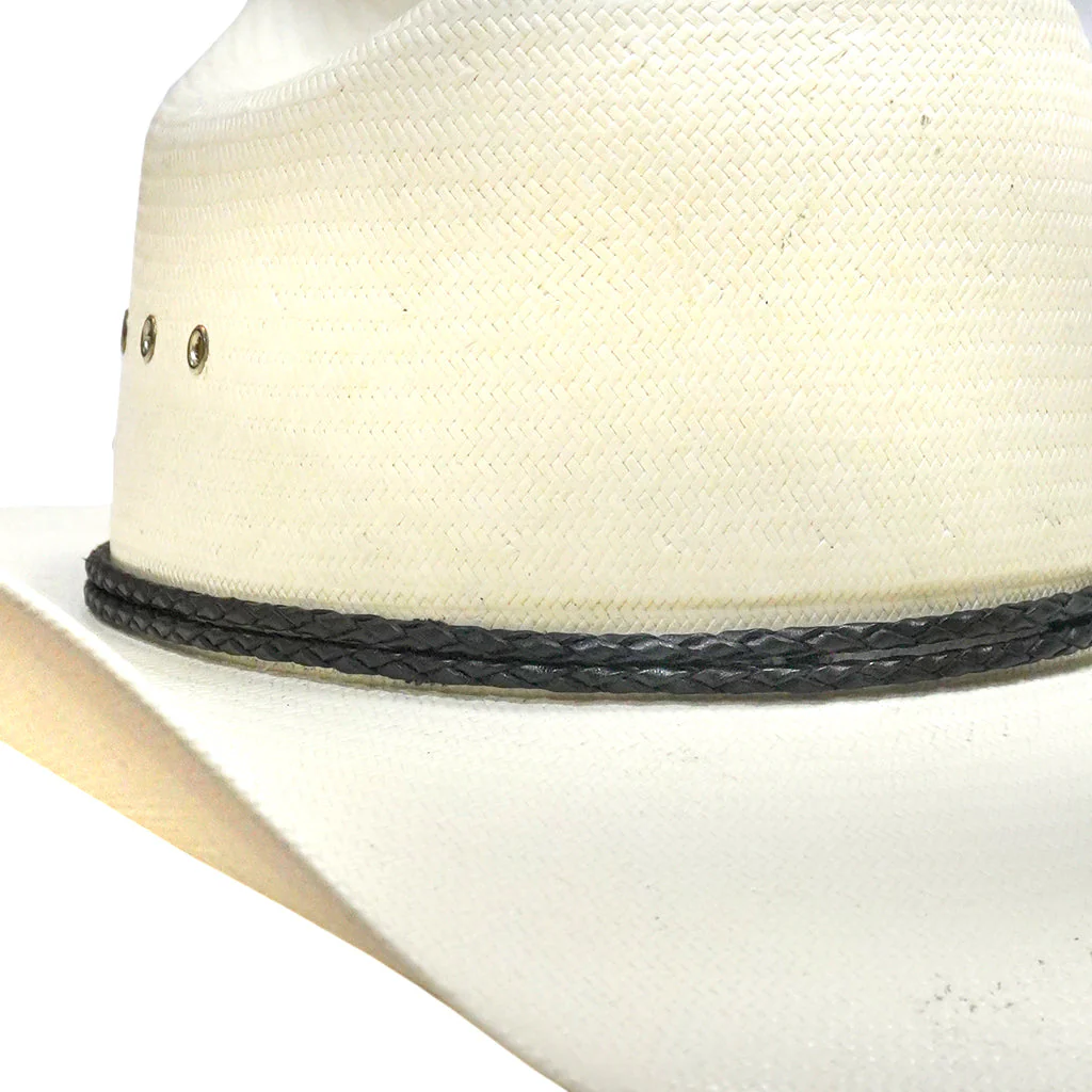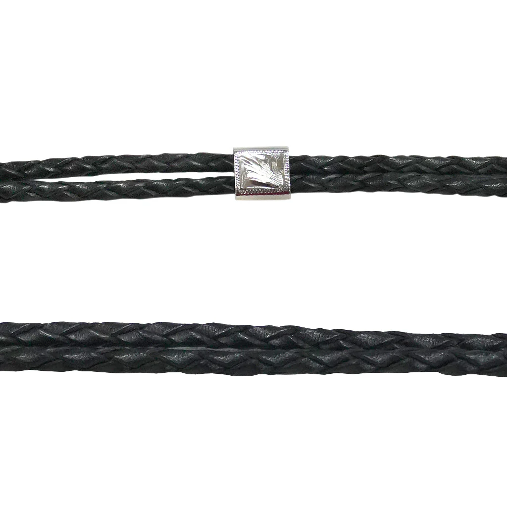 Esta toquilla elegante en color negro está hecha de piel tejido y cuenta con detalles finamente elaborados en alpaca. Ideal para complementar y realzar la apariencia de cualquier sombrero o texana