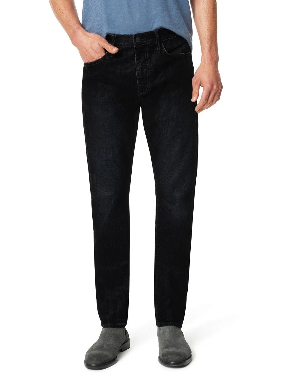 98% algodón, 2% spandex–Este no es tu jean normal de corte slim, el pantalón Asher de mezclilla aterciopelada cuenta con una sensación muy suave de viscosa a base de plantas con un estampado de hilo de tinte aplicado en la etapa de acabado. La prenda se ha roto suavemente a mano, dándole un carácter roto.–
