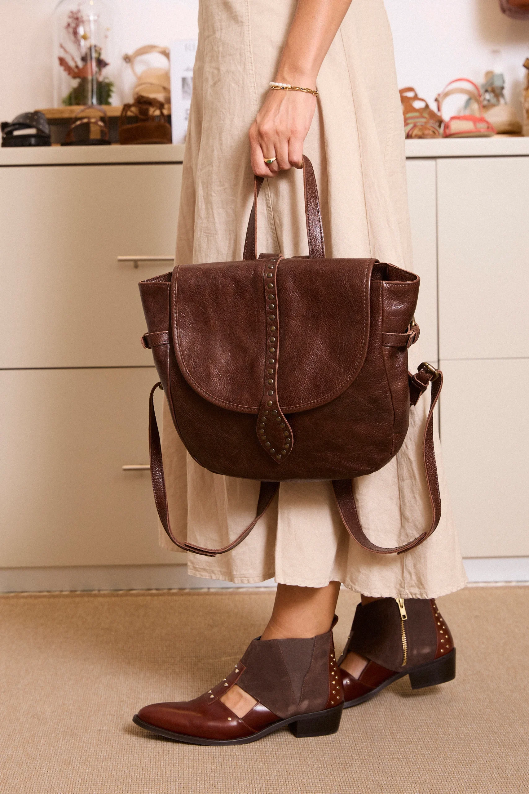 Nuestras icónicas Victoria Boots en piel vacuno cuero son el equilibrio perfecto entre atemporalidad y carácter. Silueta abierta en el empeine con cortes de diseño combinando ante a tono. Detalles de tachas en tira de empeine y parte trasera en tono plata que marcan la esencia Micuir. Cierre con cremallera metálica en interior y pieza de elástico a tono en exterior para el perfecto calce. Presenta un tacón de 4 cm de altura con plantilla de microgel para un mayor confort. Forro y plantilla de piel mestizo de cabra a tono y planta con certificado »handmade in Spain» con logo grabado a fuego. Incluye una bolsa de algodón. Diseñado y fabricado artesanalmente en España.